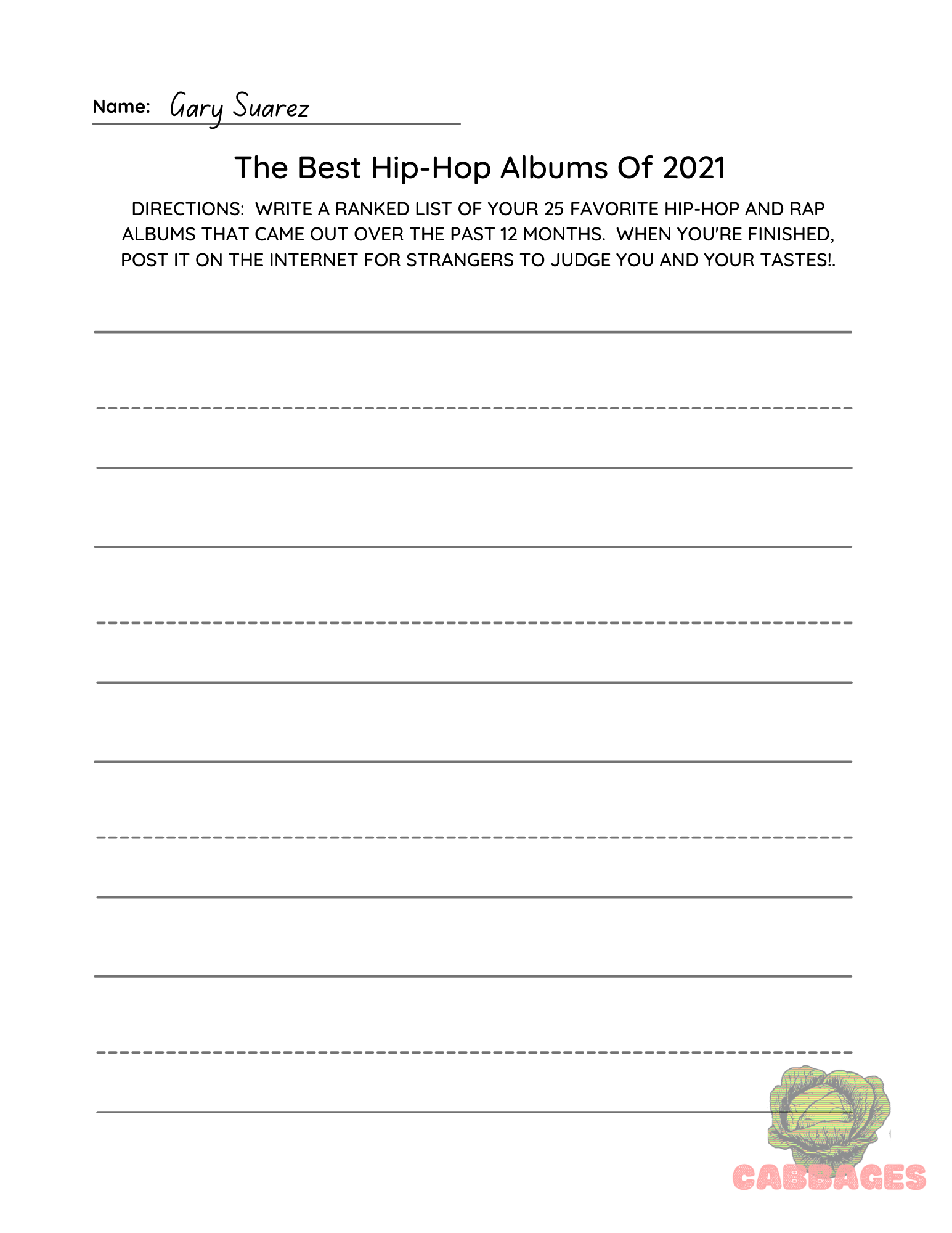 The CABBAGES Hip-Hop newsletter is a one-man operation. That means, when I decided to publish a ranked list of the Best Hip-Hop and Rap Albums of 2021, the end result was, by definition, a matter of personal choice and taste. You are going to see albums here that you haven't heard of before. You are also going to notice other albums that appeared in other outlets' lists–or even on your own individual list that do not appear here. That is how it works. It's what happens when decisions are made without succumbing to the dull tyranny of consensus. CABBAGES is Gary Suarez's point of view, and you are welcome to disagree with that point of view as much as I am welcome to disagree with every outlet that put Drake or Ye in their annual top five.